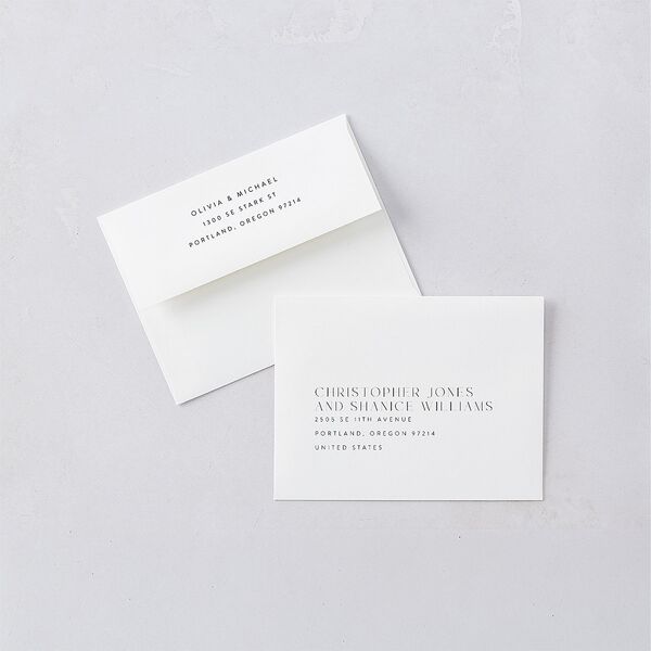 Complete your suite with our customizable colored envelopes, designed to add a pop of personality to your wedding stationery. Available in a wide range of hues to complement your theme or color palette, these vibrant envelopes pair nicely with liners for a one-of-a-kind design that's uniquely yours