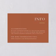 Your wedding details appear in elegant serif font on these enclosure cards. They are set against a color block background.