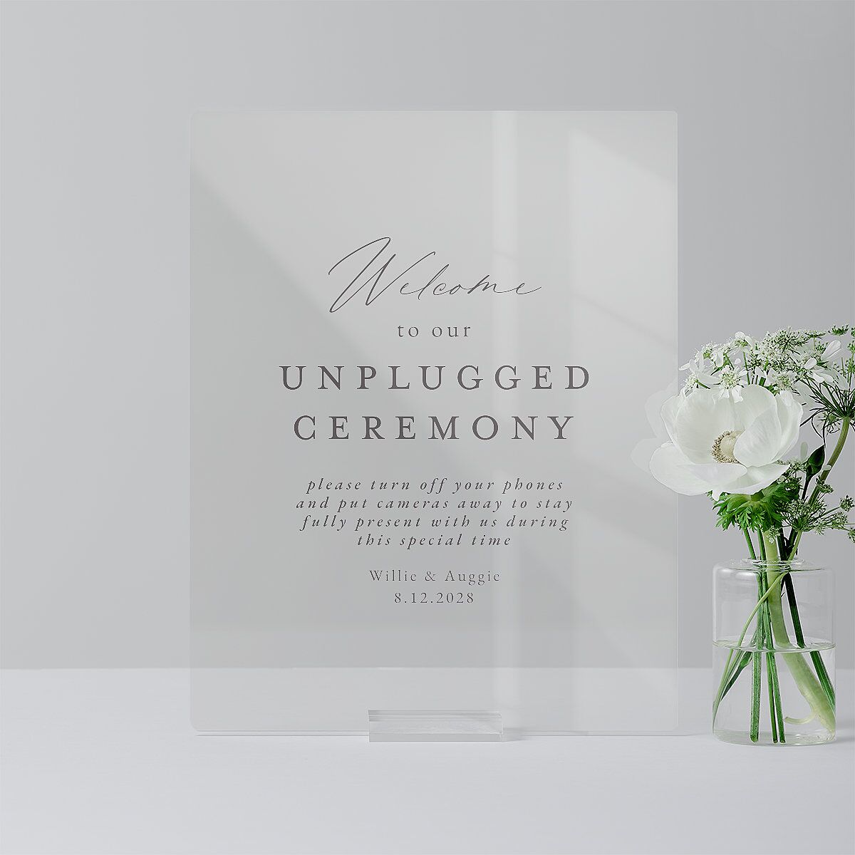 These typography-only tabletop signs effortlessly share heartfelt messages with your guests throughout the ceremony and reception. Designed for tabletop display, each piece showcases a thoughtful blend of serif, handwritten, and italic type.