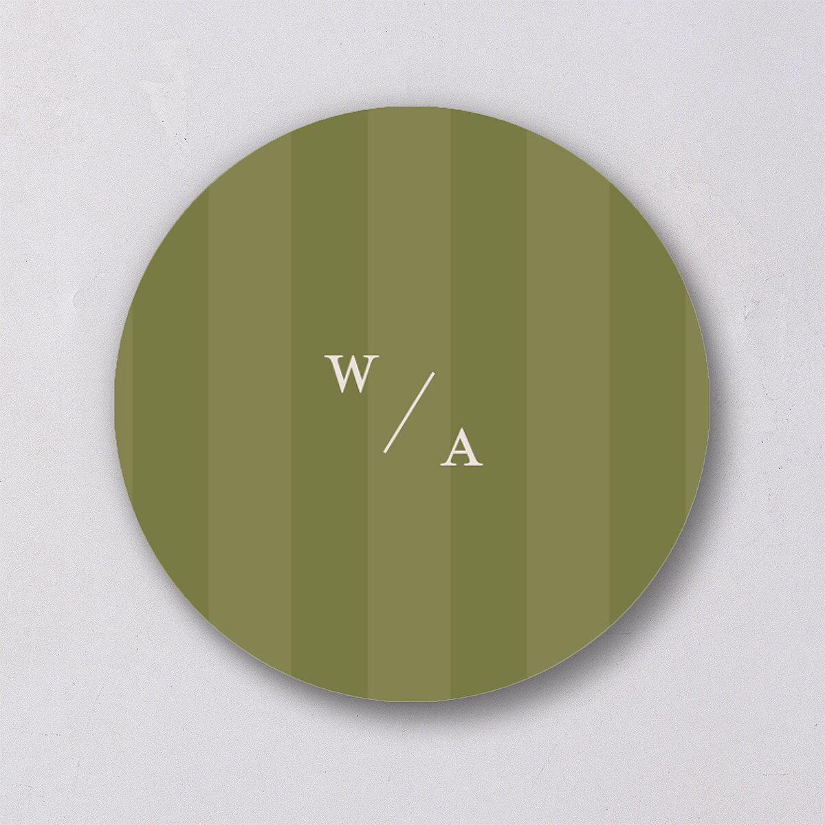 Cohesive in the style of your wedding envelope liners, these stickers feature a lush, dual-toned striped background that adds a vibrant pop of color. Stamped at the center, your initials appear in a refined arrangement, divided by a diagonal line.
