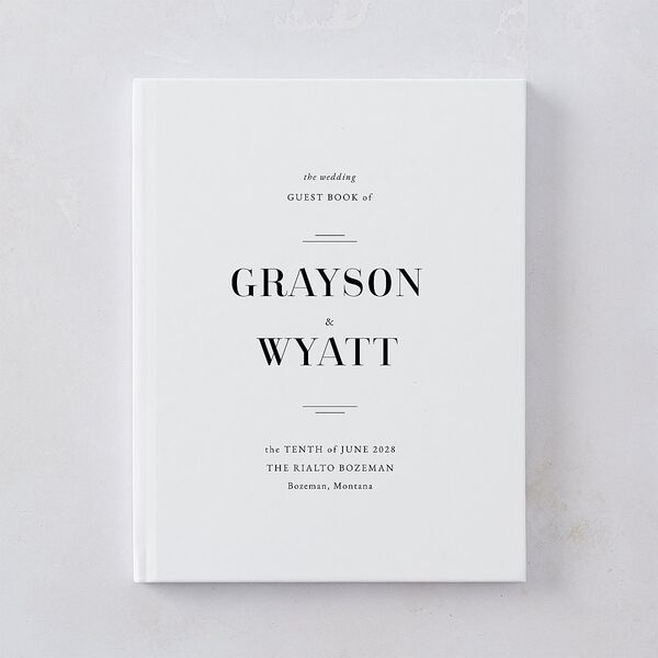 A wedding guest book is a simply classic way for guests to show their love for the couple of the hour. The front cover shows the first names of the couple along with the wedding date and venue.