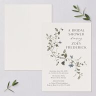 Your names and event details are presented in refined fonts on this bridal shower invitation, while a watercolor garland appears at the center. The dark background adds an element of mystique to the design.
