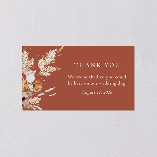 A motif featuring gilded foil sprigs and watercolor florals appears beside your thank you message on this charming favor gift tag. Your couple monogram appears in a simple, stylish font on the back of the design.
