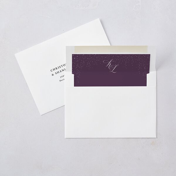 Our envelope liners craft a rich canvas for your stationery collection to rest against. Soft texture drifts down from the top like snow, coating your calligraphic monogram in a dreamy whirlwind.
