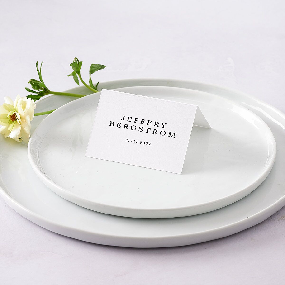 Each place card features a simple chic design. Your loved ones' names are printed towards the bottom of the card, cast against airy white space for a crisp classic finish.