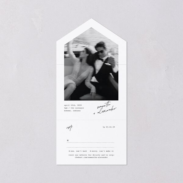 Designed to help you save, each card includes an invitation and tear-off RSVP postcard that folds up to become its own envelope with free address printing—no separate envelope needed. All you have to do is fold, seal and send. Includes three clear stickers for USPS-required easy sealing.