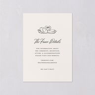 These enclosure cards highlight the finer details of your celebration in a romantic fashion. A pair of illustrated swans crowns the top, their entwined necks forming a heart above elegant script and structured serif lettering. On the back, a solid backdrop frames your initials and wedding date in minimalist type, accented by a flowing monogram.