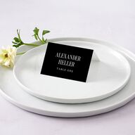 Bold and structured typography transforms these modern wedding place cards into a high-end centerpiece for your reception tablescape. Each seating card spells out your loved ones' names with uppercase serif letterforms, set against a saturated hue of color. Designed to be folded, these place cards feed into your love for all things chic, quiet luxury, and minimalist.