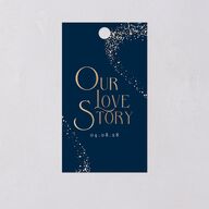 Your favor gift tags are flanked with curving dotted details on opposite corners, top and bottom. The stately font sits in the center while the other side displays your message in an elegant and romantic font.