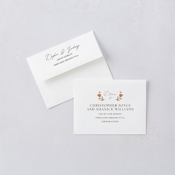 Complete your suite with our customizable colored envelopes, designed to add a pop of personality to your wedding stationery. Available in a wide range of hues to complement your theme or color palette, these vibrant envelopes pair nicely with liners for a one-of-a-kind design that's uniquely yours