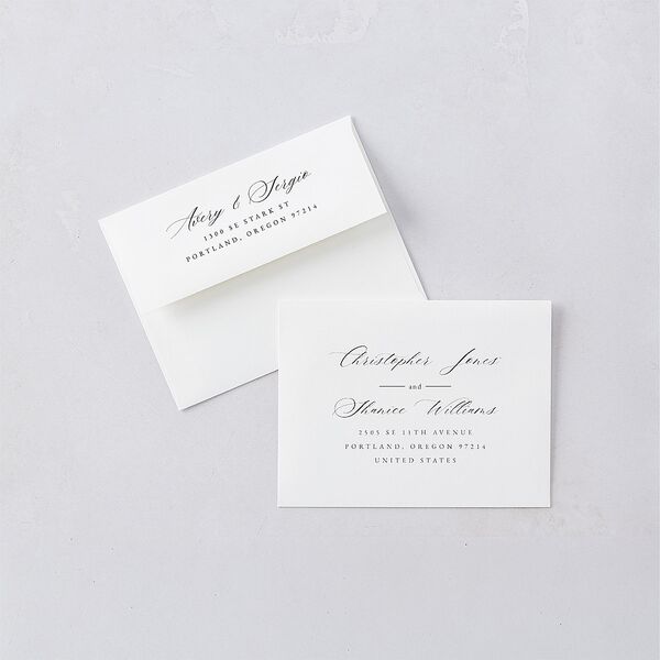 Complete your suite with our customizable colored envelopes, designed to add a pop of personality to your wedding stationery. Available in a wide range of hues to complement your theme or color palette, these vibrant envelopes pair nicely with liners for a one-of-a-kind design that's uniquely yours
