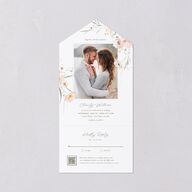 These all in one invitations offer a seamless solution, combining your invitation and RSVP in one elegant design. Watercolor blooms dance gracefully over a cherished photo of you both while event details unfold below in a harmonious mix of serif and cursive typography.