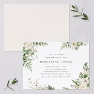 These rehearsal dinner invitations feature an elegant design with your names and event details showcased in a serif font. Beautifully illustrated ferns frame the text, evoking a feeling of joy and celebration, matched by a complementary color on the back.