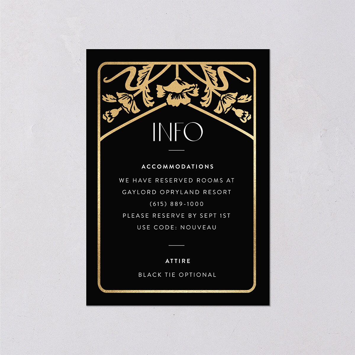 Gilded with foil patterns and flourishing flowers, your wedding enclosure card is eye-catching and elegant. Your card displays an earthy-toned backdrop with your event details in a contrasting shade and tall script.