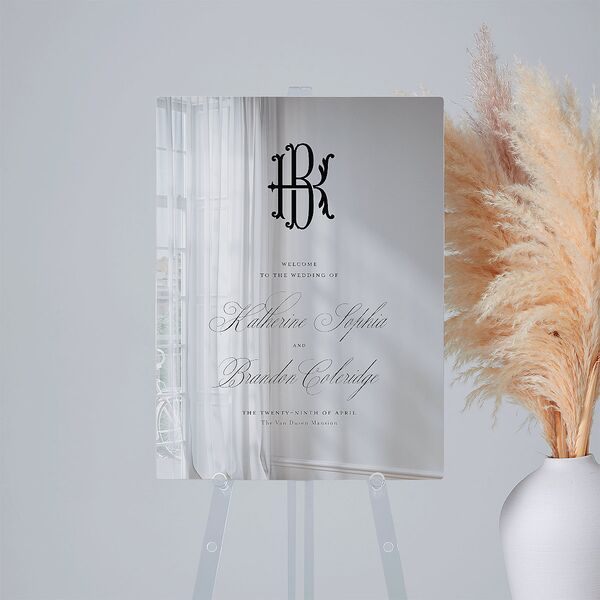 Luxury Floral Monogram Mirrored Acrylic Welcome Sign Medium