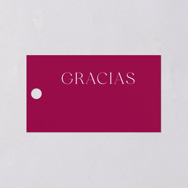 Sus etiquetas de regalo favoritas muestran un diseño de papel de lámina en frente debajo de la tipografía, lo que le da a la recepción de su boda un acabado lujoso. El reverso muestra su mensaje de agradecimiento personalizado sobre un fondo mate.