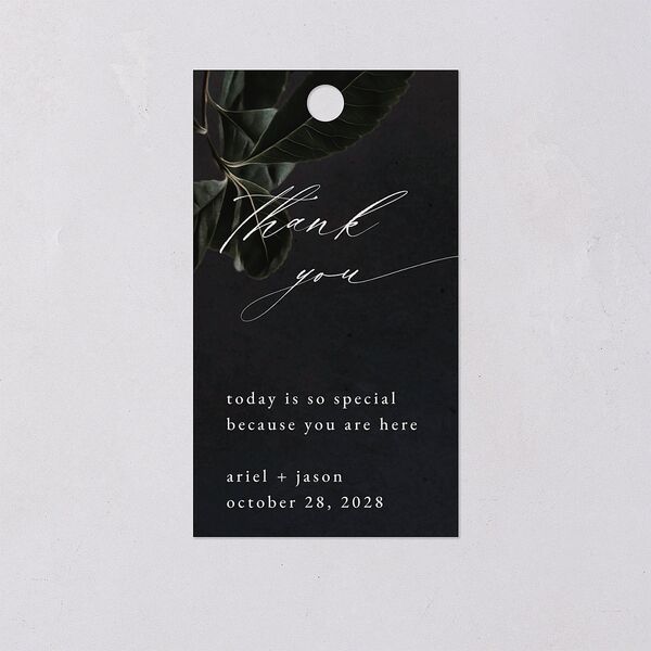 These striking gift tags feature a floral motif on both sides. This is coupled with your custom details in elegant calligraphy and serif font.