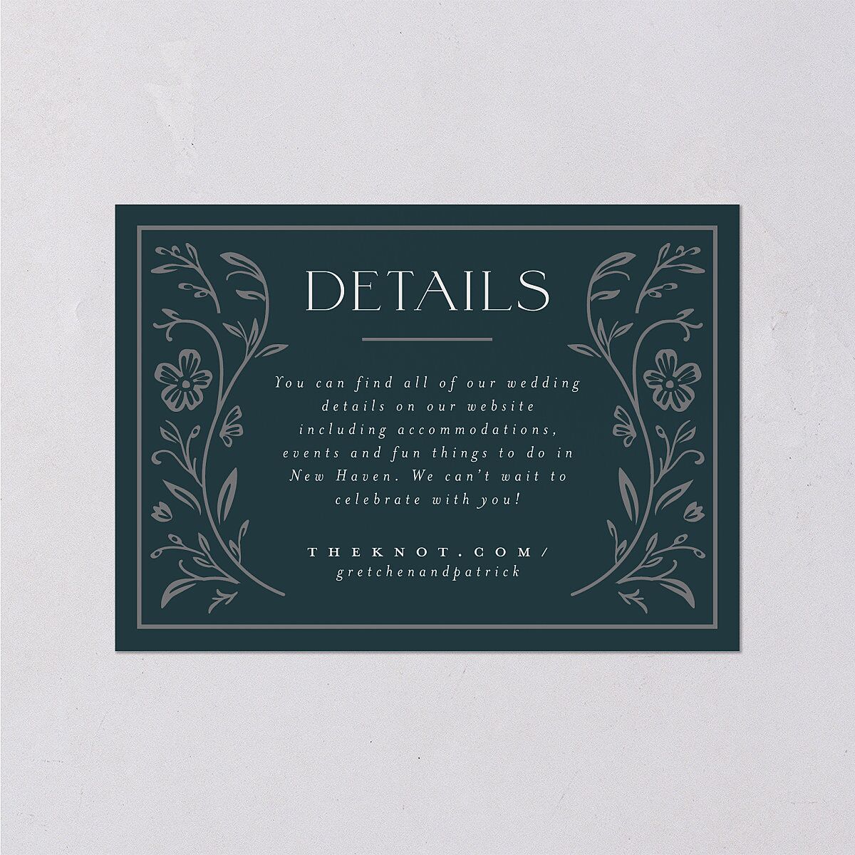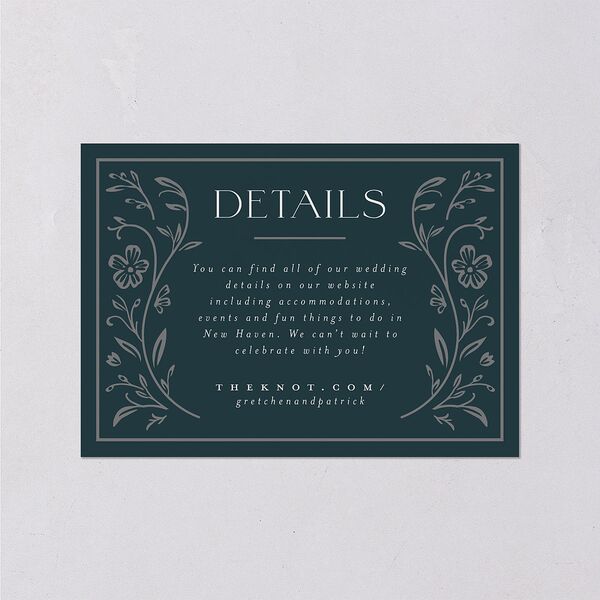 These wedding enclosure cards feature an ornamental design that resembles a beautiful storybook cover. At the center of the display lies the additional details of your special day in a mix of italic and serif fonts.