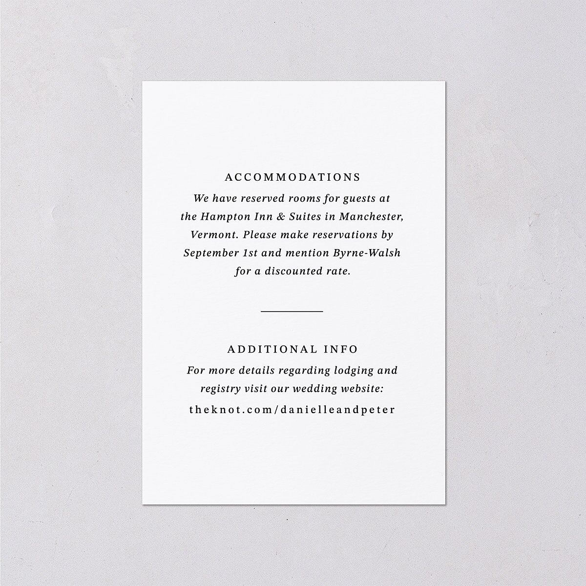 These wedding enclosure cards will make it as straightforward as possible for your loved ones to watch you exchange your vows. While the front will showcase a photo of you with your initials, the reverse has space for you to provide details on accommodation, directions, or other need-to-know information.