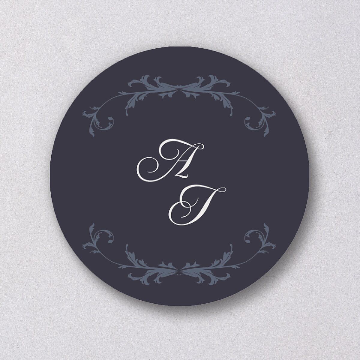 Our wedding stickers are crafted with a royal hue of color. Delicate renderings of feathery threads cocoon your personal monogram, printed in a fine calligraphy at the heart of the design.
