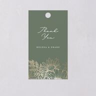 Give gifts that feel heartfelt with our foil-gilded wedding favor tags. Each one expresses gratitude through a refined mix of cursive and serif typography, thoughtfully laid out within generous white space. Foil-stenciled wildflowers and greenery bloom freely along the base, adding a graceful botanical flourish to this meaningful keepsake.
