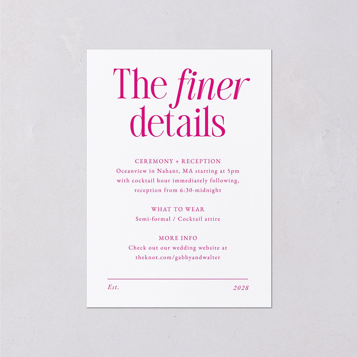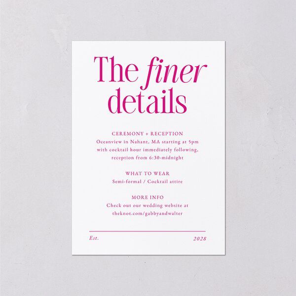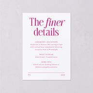 These wedding enclosure cards are designed to share the finer details of your celebration with guests. A bold serif heading spans the top portion, followed by neatly organized sections for essential information. On the reverse, a photo of the two of you acts as the finishing cherry on top.