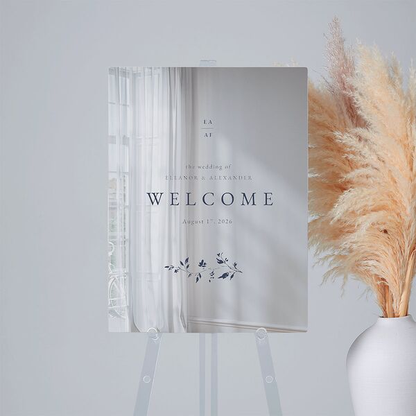 Timeless Floral Mirrored Acrylic Welcome Sign Medium