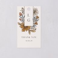 These favor gift tags feature a charming motif of wildflower illustrations, coupled with your initials. Further details appear in serif and script font on the front and back of the tags.