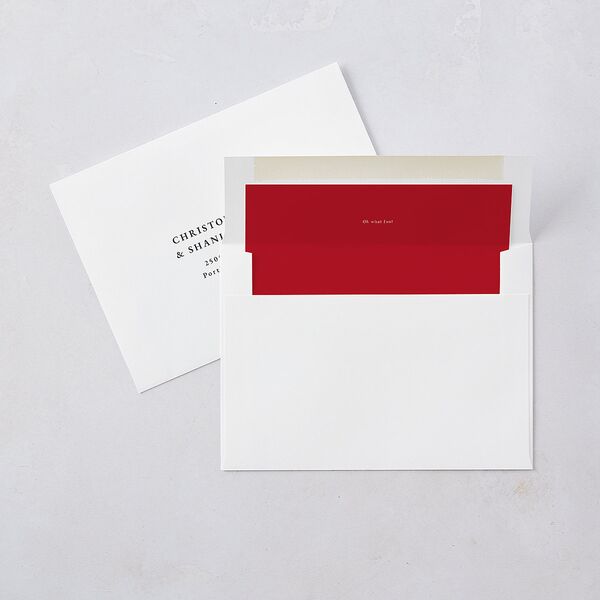 Matching DIY envelope liners are easy to assemble and add a personalized touch to your invitation envelopes. Simply peel off the cover of the adhesive strip and slip the liner into your envelope, and press to stick.