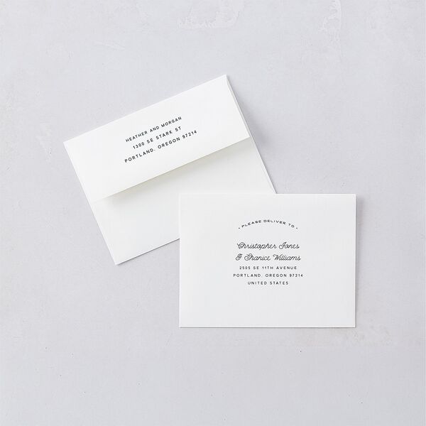 Complete your suite with our customizable colored envelopes, designed to add a pop of personality to your wedding stationery. Available in a wide range of hues to complement your theme or color palette, these vibrant envelopes pair nicely with liners for a one-of-a-kind design that's uniquely yours