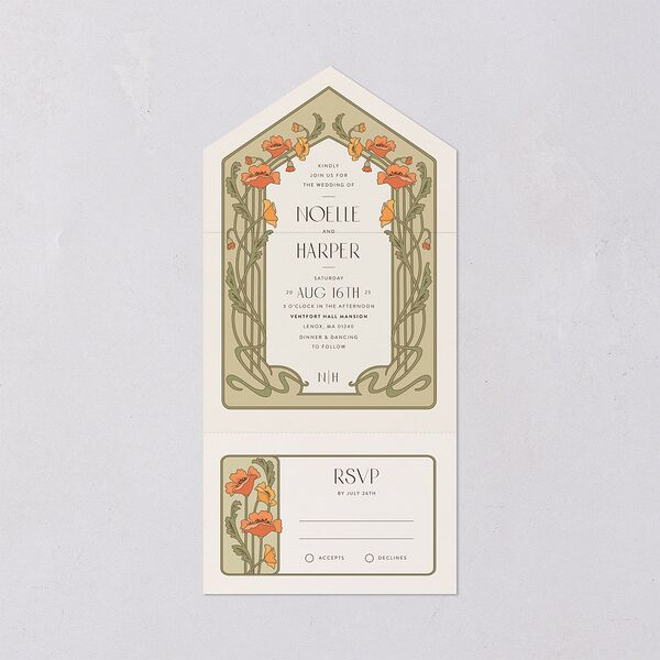 Vintage Nouveau Floral All-in-One Wedding Invitations