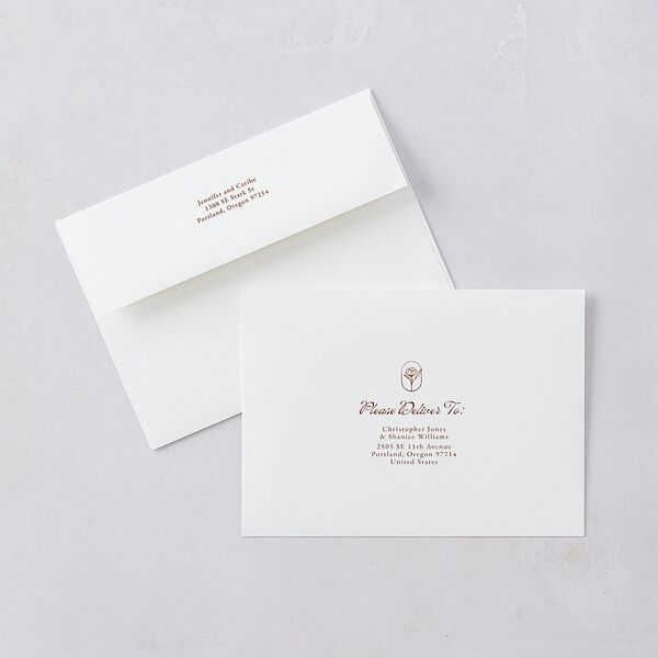 Complete your suite with our customizable colored envelopes, designed to add a pop of personality to your wedding stationery. Available in a wide range of hues to complement your theme or color palette, these vibrant envelopes pair nicely with liners for a one-of-a-kind design that's uniquely yours.