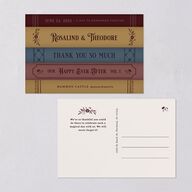 These thank you postcards channel the charm of a vintage novel cover, with ornate serif lettering that feels both regal and heartfelt. Delicate borders of illustrated florals and hand-drawn motifs frame your details on the front, adding a romantic, old-world touch. The reverse side’s layout is clean and centered, allowing a heartfelt note of gratitude to shine like the final page of a beloved story.