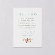 A subtle floral flair comes to life on these wedding enclosure cards. Each card relays important information regarding your nuptial celebrations, cleanly laid out in serif typography. A rosy garland in varying shades closes out the text. Flip the card to reveal a QR code that directs loved ones to your wedding website.