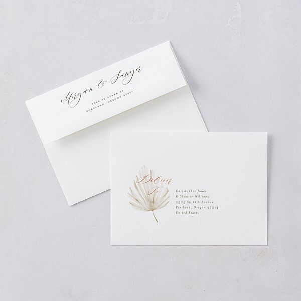 Complete your suite with our customizable colored envelopes, designed to add a pop of personality to your wedding stationery. Available in a wide range of hues to complement your theme or color palette, these vibrant envelopes pair nicely with liners for a one-of-a-kind design that's uniquely yours