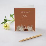 A warm western "thank you" won't go astray. Each of these thank you cards features a solid color backdrop along with your names, wedding date, and a floral image.